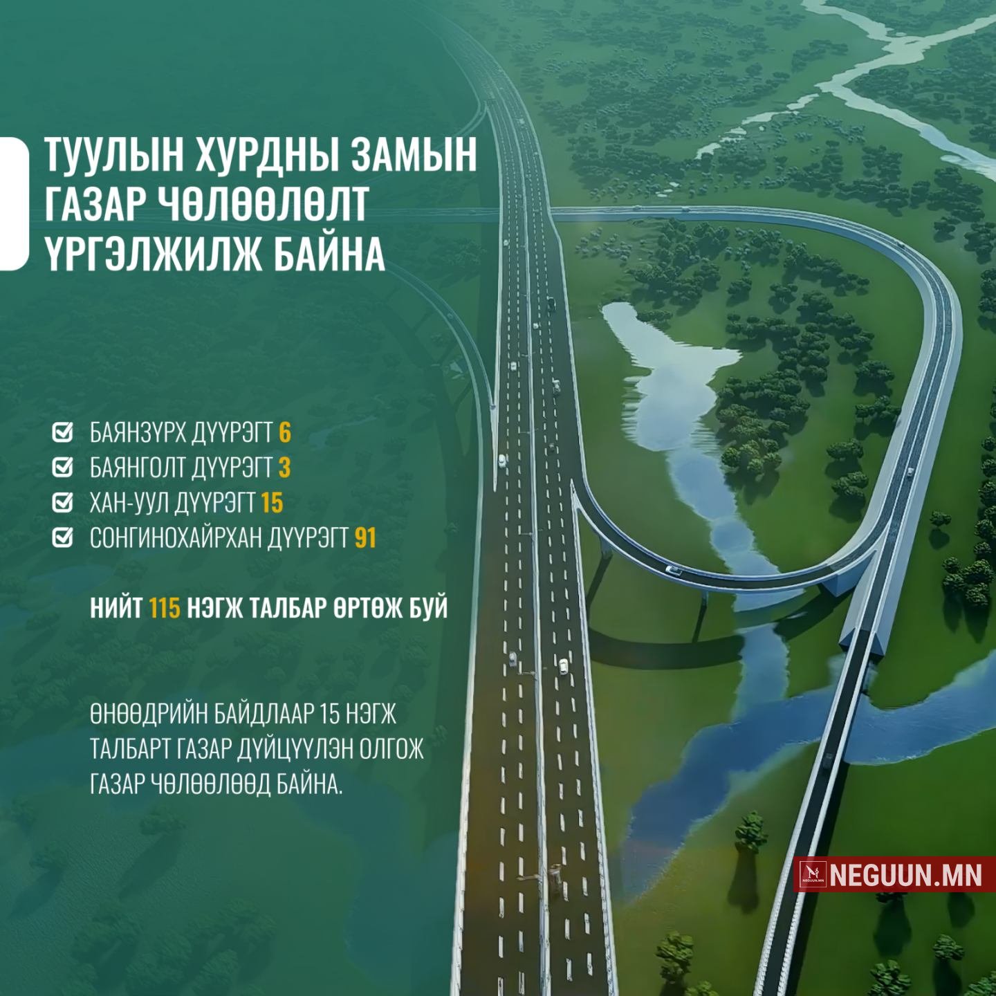 ТУУЛЫН ХУРДНЫ ЗАМЫН ГАЗАР ЧӨЛӨӨЛӨЛТ ҮРГЭЛЖИЛЖ БАЙНА