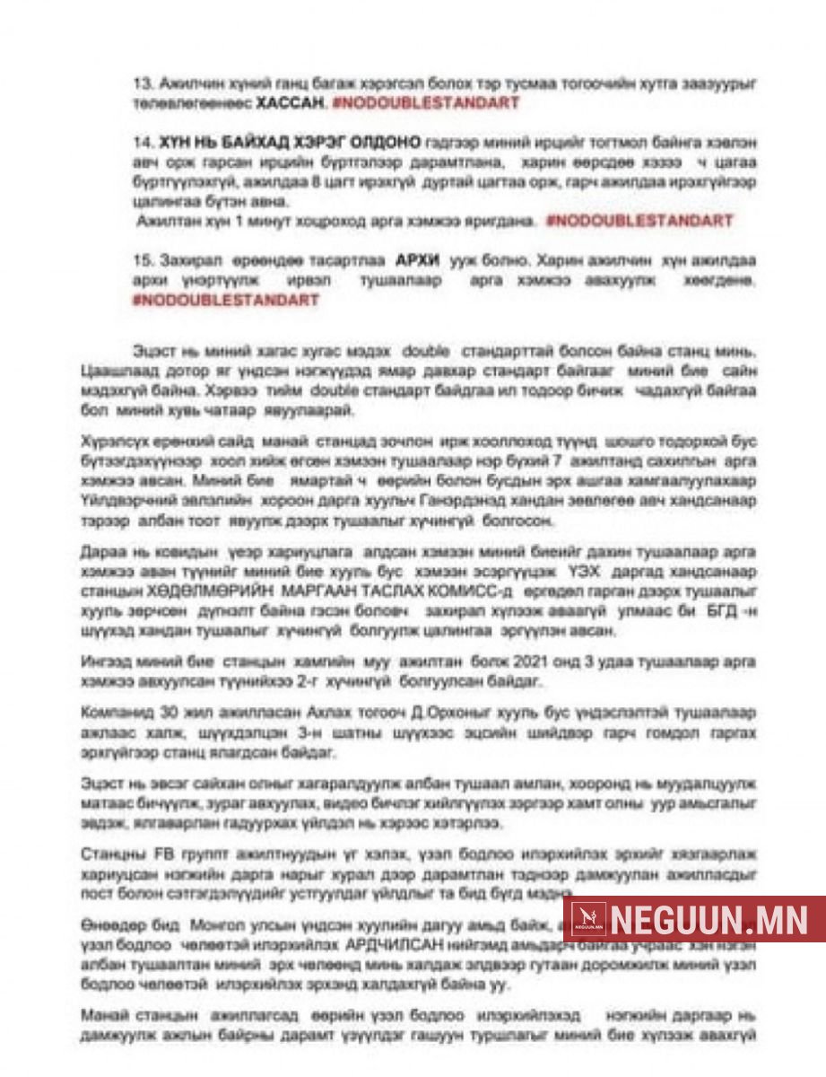 Би өнөөдөр ийм юм бичихдээ тулж байгаадаа үнэхээр гутарч байна. 16 жилийн турш 4 эрүүл сайхан хүүхдийн аав ээж болж, 200 гаруй тэрбум төгрөгийн хөрөнгө хамт бүтээчээд хамаг бузар булай нь ил болмогц хууль ёсоор өөр дээрээ авах ёстой хүүхдүүд болон эд хөрөнгийн маргааныг маань улстөртэй холбож, намайг явдал суудалтай болгож буй нь хөх инээд, харуусал хоёрыг зэрэг хүргэж байна. Ганболд бид хоёрын салалт шүүхээр үнэн зөв явж дуустал чимээгүй байя, таарч тохирохоо болиод салсан ч гэсэн хүүхдүүдийнхээ аавын нэр хүндийг бодоод олон нийт битгий хэл хамаатан садандаа хүртэл надтай яаж харьцдаг байсан талаар ч олон юм ярилгүй олон жил боллоо. Хөрөнгө биш хүнийх нь нэр үлддэг хорвоо шүү дээ уул нь. Бүх юмаа нийтэд яримаар байгаа бол ядаж үнэнээр нь БҮХ юмаа ярьцгаая даа Ганболдоо. 16 жилийн амьдралыг минь няцааж гэрлэлтийн баталгаагаа хүчингүй болгуулж, ах дүүсээрээ нийлж нялх үрээ аваад явсан намайг 1 жил гаран дээрэлхэж байхад би гоншигнож яваагүй шүү. Одоо харин тэсэшгүй нь. Бидний амьдрал Ганболдын өвөөгийн нэр дээрх Сансарын тунелийн урд байдаг Микрийн жижигхээн хуучны 3 өрөө байранд 2005 онд эхэлж байв. Энэ үед Тордайн Ганболд гэдэг хүний нэр дээрээ зочид буудал битгий хэл 1 өрөө байр ч байгаагүй. Сэхээтэн, боловсролтой, боломжтой айлын хүүхэд байсан би сайн аав ээжийн буянаар 11 наснаас хойш Герман, Швейцарьт сурч амьдарч ирсэн. Тухайн үед аавын бие таагүй байснаас болж Монголд ирж сургуулиа дуусгаж байв. Багаас биеэ дааж гадаадад олон жил амьдарсан, аав ээжийгээ зовоож мөнгө авахгүйн тулд 16 настайгаасаа ажил хийж эхэлсээн би. Герман хэлтэй тул орчуулга хийж, аялал жуулчлалын компанид хөтөч, барилга байшин, архитектурын сонирхолтой тул Барилга.МН сэтгүүлд ажиллаж, редактор, ерөнхий менежер хүртэл дэвшиж ажиллаж байв. Улмаар үл хөдлөхийн салбарт гүн шингэсэн байлаа. Т.Ганболд нь намайг 22 настай үл хөдлөх хөрөнгийн зуучлалын чиглэлээр ажиллаж байхад байр авах зарах нэрийдлээр намайг анх эргүүлж эхэлсэн билээ. Надаас ах ч ажилсаг хөдөлмөрч, амьдралын ухаантай гэж бодон, надад халамжтай байсан тул таалагдаж бид үерхсэн. Гэвч удалгүй 2005 оны намар нь би Чех улсын засгийн газрын тэтгэлэгээр сургуульд явах болов. Харин Ганболд үүнийг мэдээд өөртэйгөө үлдэхийг ятгаж, дараа нь АНУ руу сургуульд явуулж өгье хэмээн хамтдаа эхлүүлсэн Корпорейтын төслөө дуусгахыг гуйсан. Би ч зөвшөөрсөн. Үүнээс жил орчмын дараа буюу 2006 онд тухайн үеийн Ерөнхийлөгч Намбарын Энхбаяр гуайн заавар тушаалаар Дарханы Төмөрлөгийн үйлдвэрийн захирлаар тэр томилогдож Дарханд надаас тусдаа амьдрах болсон. Харин би Улаанбаатарт үлдэж бидний хамтдаа санаачлан эхлүүлсэн Баянгол зочид буудлын ард байрлах анхны Корпорейт зочид буудлыг хөрөнгө оруулагчаас нэмж мөнгө татан барьж эхэлсэн. Ганболд бид хоёрын хамтдаа 2007 оны 5 сард нээлтээ хийсэн уг барилгыг 2 жил гарангийн турш би дангаар хариуцан, “бидний гэр бүлийн” төсөл хэмээн чин үнэнээр бодож бариулсан гэж бахархалтай хэлнэ. 2009 он хүртэл Дарханд амьдарсан Ганболд өөрөө ч үүнийг хүлээн зөвшөөрнө, хөрөнгө оруулагч ч мэднэ, тухайн үеийн барилгын ажилчид, түүхий эд нийлүүлэгчид ч батална. Анх барилга эхлэхэд орон сууцны төсөл болгоё гэж Ганболд хэлж байсан ч оюутан үеэс аялал жуулчлалын чиглэлээр ажиллаж байсны хувьд Улаанбаатар хотод цэвэрхэн, тухтай, хотын төвд байршилтай, гоёмсог зочид буудал тухайн үед байдаггүйг м
