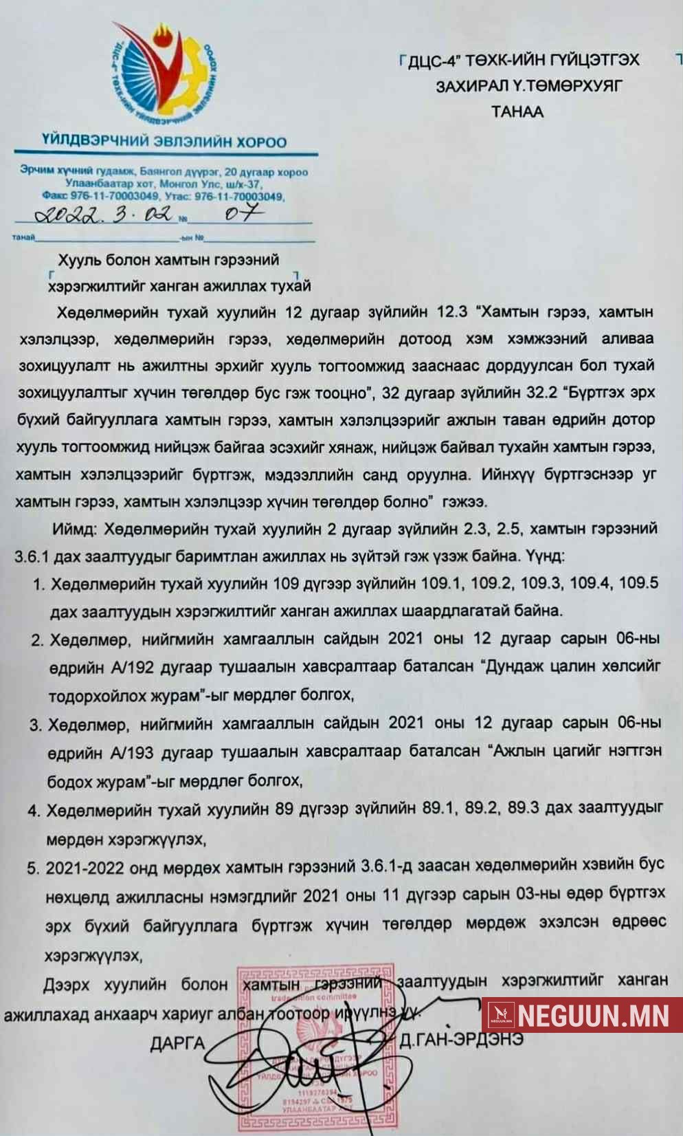 "АЛТАНДОРНОД МОНГОЛ" КОМПАНИЙ ЗАХИРАЛ Т.ГАНБОЛДЫН ЭХНЭР Х.ЯНЖИНГААЖИД ИНГЭЖ БИЧЖЭЭ
