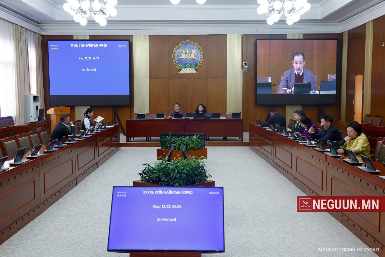 Улсын Их Хурлын Хууль зүйн байнгын хорооны 2025 оны хаврын ээлжит чуулганы анхны хуралдаан өнөөдөр (2025.03.18) гишүүдийн 54.5 хувийн ирцтэйгээр 12 цаг 42 минутад эхэлж, Үндсэн хуулийн цэцийн 2025 оны 01 дүгээр дүгнэлтийг хэлэлцэн шийдвэрлэлээ.
