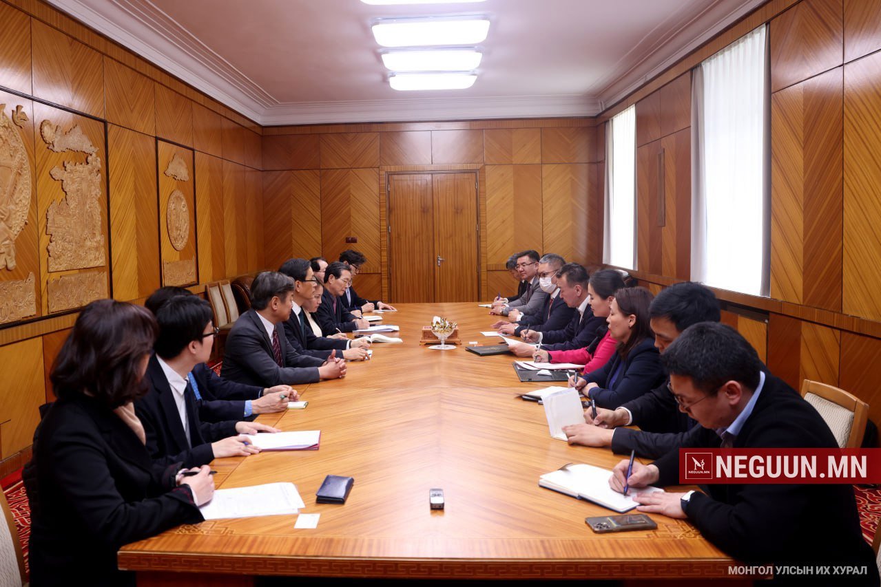 Уулзалтад Аж үйлдвэр, эрдэс баялгийн яамны Аж үйлдвэрийн бодлогын газрын дарга С.Сүхбат, Солонгосын Хөгжлийн агентлагийн төслийн менежер Сон Ён Кван, Ха Жин Хёк, На До Сунг болон албаны бусад хүмүүс байлцлаа гэж Улсын Их Хурлын Хэвлэл мэдээллийн газраас мэдээлэв.
