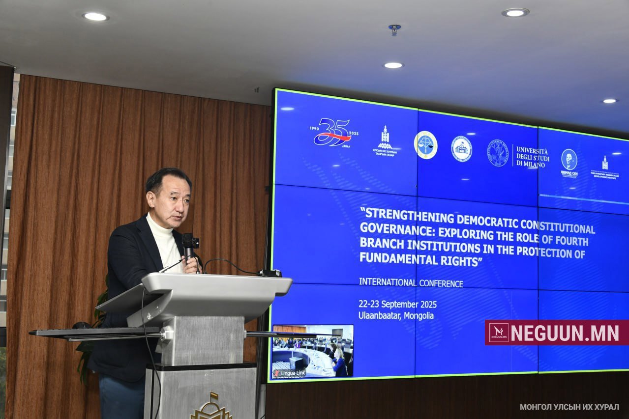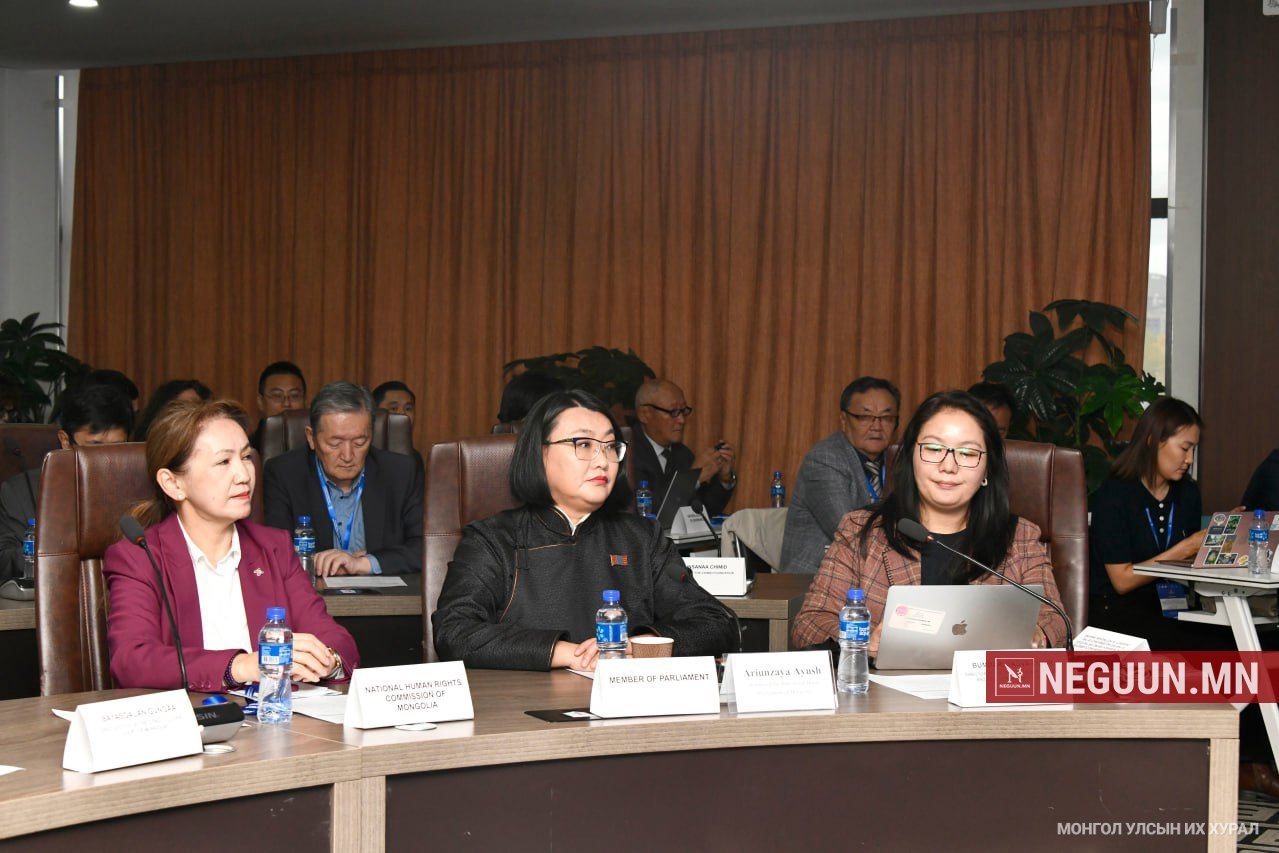 Монгол Улсын Их Хурлаас Олон улсын парламентын холбоо (ОУПХ)-той хамтран зохион байгуулж буй Нэгдсэн Үндэстний Байгууллага (НҮБ)-ын хүний эрхийн механизмуудад парламентын оролцоог бэхжүүлэх асуудлаарх өнөөдрийн (2025.06.23) уулзалт-хэлэлцүүлэг Төрийн ордонд үргэлжилж байна. Уулзалт-хэлэлцүүлгийн чиглүүлэгчээр Улсын Их Хурлын гишүүн Г.Уянгахишиг ажиллаж байгаа бөгөөд Төрийн байгуулалтын байнгын хорооны дарга Ж.Бат-Эрдэнэ, Хууль зүйн байнгын хорооны дарга Д.Цогтбаатар нар арга хэмжээг нээж үг хэлсэн бол Олон улсын парламентын холбооны Ерөнхий нарийн бичгийн дарга Мартин Чунгон мэндчилгээ дэвшүүлсэн. Хоёр өдөр үргэлжлэх уулзалт-хэлэлцүүлгийн эхний өдөр нийт таван сэдвээр хэлэлцүүлэг өрнүүлэх юм. Нээлтийн арга хэмжээний дараа Монгол Улс, НҮБ-ын хүний эрхийн хяналтын байгууллагууд, Хүний эрхийн төлөв байдлын ээлжит нэгдсэн хэлэлцүүлэг болов. Эхлээд НҮБ-ын Эмэгтэйчүүдийг алагчлах бүх хэлбэрийг устгах тухай конвенцын хорооны ерөнхийлөгч болон гишүүн асан; ОУПХ-ны Эмэгтэйчүүдийг алагчлах бүх хэлбэрийг устгах тухай конвенцын асуудлаарх шинжээч; Бүгд Найрамдах Гана Улсын Хуулийн хүрээлэнгийн ректор Хилари Гбедемах НҮБ-ын хүний эрхийн гэрээ, механизмуудын талаар илтгэл танилцуулав. Энэ удаагийн уулзалт-хэлэлцүүлгийн сэдэв, зорилгын талаар болон хүний эрхийн суурь баримт бичгүүдийн талаар ерөнхий мэдээлэл танилцуулсан. НҮБ-ын Хүний эрхийн зөвлөл, ялангуяа Хүний эрхийн төлөв байдлын ээлжит нэгдсэн хэлэлцүүлэг (UPR), болон Эмэгтэйчүүдийг алагчилах бүх хэлбэрийг устгах хорооны (CEDAW хороо) үйл ажиллагаан дахь парламентын ойлголт мэдлэг, оролцоог нэмэгдүүлэх нь чухал болохыг тэрбээр тэмдэглэв. Хүний эрхийн баримт бичгүүдийн суурь болох НҮБ-ын Дүрэм нь 1945 онд зургаан хэлээр батлагдсан хэмээгээд “Эдийн засаг, нийгэм, соёл болон хүмүүнлэгийн шинж чанартай олон улсын асуудлыг шийдвэрлэх, арьсны өнгө, хүйс, хэл, шашин шүтлэгээр үл ялган хүний эрх, хэн бүхний үндсэн эрх чөлөөг хүндэтгэх явдлыг хөхиүлэн дэмжиж, хөгжүүлэх талаар олон улсын хамтын ажиллагааг хэрэгжүүлэх” гэсэн нэгдүгээр зүйлийн 3 дахь хэсгийг хатагтай Хилари Гбедемах онцлон эшлэв. Түүнчлэн 1948 онд батлагдсан Хүний эрхийн Түгээмэл Тунхаглал нь чухал суурь баримт бичиг хэмээгээд “Хүн бүр төрөхөөсөө эрх чөлөөтэй, нэр төр, эрхийнхээ хувьд адил тэгш байна. Тэдэнд оюун ухаан, өрлөг сэтгэл заяасан бөгөөд өөр хоорондоо ахан дүүгийн ёсоор харилцах ёстой” гэсэн нэгдүгээр зүйлийг онцоллоо. Жендэрийн тэгш байдлыг хангах агуулгаар энэ зүйлд “…эгч дүүсийн харилцаа …” гэсэн тодотгол хийх саналаа дурдав. Энэхүү зарчимд тулгуурласан дээрх суурь баримт бичгүүд нь хүний эрхтэй холбоотой олон улсын бусад бүх баримт бичиг, хууль, журмын үндэс гэдгийг дурдсан. Илтгэгч хүний эрхийн талаар ерөнхий мэдээллийг танилцуулаад хүний үндсэн эрх болон нийгмийн нийтлэг эрхийг олон улсын гэрээ, конвенц, улс бүр Үндсэн хуульдаа баталгаажуулсан байдгийг хэллээ. Олон улсын холбогдох гэрээ, конвенцуудыг соёрхон баталсан гишүүн орнууд тэдгээрийн зохицуулалтыг хууль тогтоомж лугаа дагаж мөрдөх үүрэг хүлээсэн байдгийг тодотгов. Хүний эрх нь нийгмийн бүх талбарт хэрэгжих байх ёстой бөгөөд Иргэний болон улс төрийн эрх ; Эдийн засаг, нийгэм, соёлын эрх болон н ийгмийн нийтлэг эрхүүд (коллектив эрх)-ийг онцолсон. Хүний эрх нь хүн нэг бүрд хамааралтай түгээмэл, хуваагдашгүй, салшгүй бөгөөд харилцан х