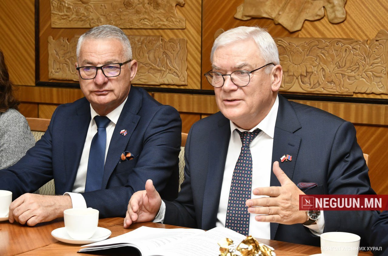 УИХ дахь Монгол-Польшийн парламентын бүлгийн дэд дарга Б.Заяабал, хоёр улсын олон талт харилцаа улам бүр өргөжин тэлж байгаад баяртай байна гээд Польш Улсын аж үйлдвэржсэн туршлага, эдийн засгаа төрөлжүүлсэн бодлогын шийдлүүдээс харилцан суралцах хүсэлтэй байгаагаа уламжлав. Харин УИХ-ын гишүүн Г.Лувсанжамц хэлэхдээ, тус улс эдийн засгийн реформыг амжилттай хэрэгжүүлснээр өдгөө нэг хүнд ногдох ДНБ-ий хэмжээгээр үсрэнгүй урагшилж, аж үйлдвэрлэлд суурилсан эдийн засгийн өсөлтийг бий болгож чадсаныг онцоллоо. Уулзалтад оролцогчид төрийн өмчит компаниудын менежментийг сайжруулж, үр өгөөжийг нэмэгдүүлсэн тус улсын сайн туршлагыг тодотгохын зэрэгцээ ашигт малтмал, уул уурхайн салбарын эрх зүйн орчныг боловсронгуй болгох талаар нээлттэй санал солилцохоор тогтов хэмээн Улсын Их Хурлын Хэвлэл мэдээллийн газраас мэдээллээ.
