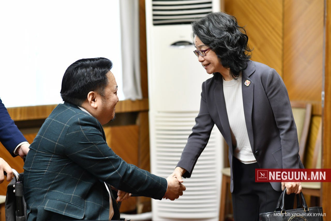 Уулзалтын үеэр талууд хоёр улсын хүмүүнлэгийн салбарын хамтын ажиллагааг өргөжүүлэх, хөгжлийн бэрхшээлтэй иргэдийн эрхийг хангах, хамгаалах чиглэлээр олон улсын түвшинд хамтран ажиллах боломжийн талаар санал солилцлоо хэмээн Улсын Их Хурлын Хэвлэл мэдээллийн газраас мэдээлэв.