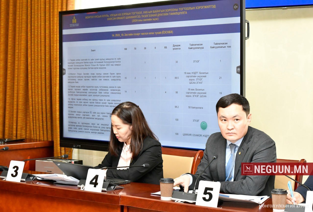ТББХ: Хууль, тогтоолоор үүрэг, чиглэл болгосон Улсын Их Хурлын шийдвэрийн биелэлтийн тайланг хэлэлцэв