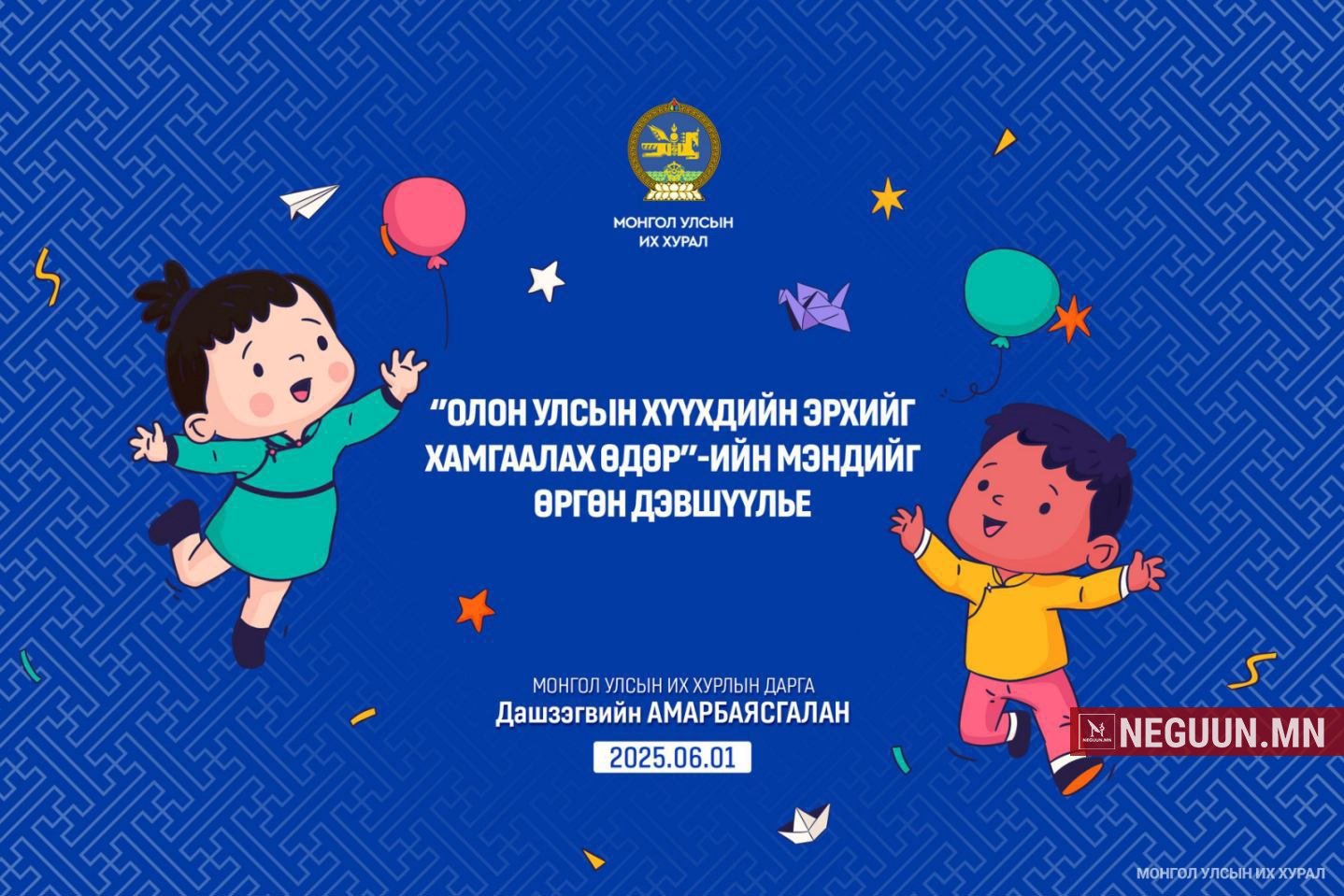 Хүүхдийн эрхийг хамгаалах өдрийг тохиолдуулан УИХ-ын дарга Д.Амарбаясгалан мэндчилгээ дэвшүүллээ