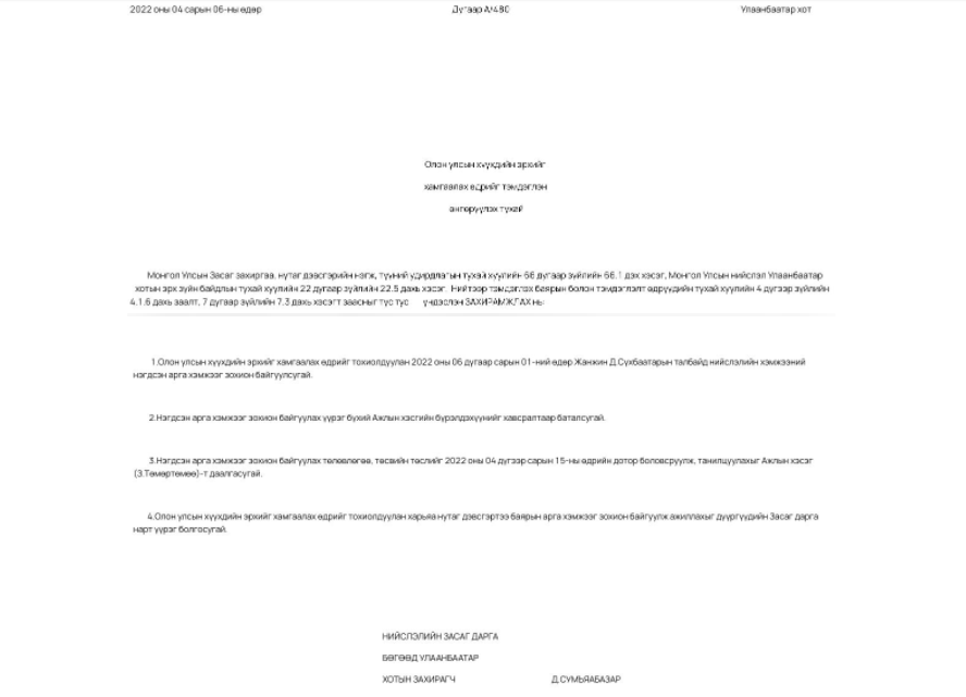 Олон улсын хүүхдийн эрхийг хамгаалах өдрийг тохиолдуулан 2022 оны зургаадугаар сарын 1-ний өдөр Жанжин Д.Сүхбаатарын талбайд нийслэлийн хэмжээний нэгдсэн арга хэмжээг зохион байгуулна. Энэ хүрээнд харьяа нутаг дэвсгэртээ баярын арга хэмжээг зохион байгуулж ажиллахыг дүүргүүдийн Засаг дарга нарт үүрэг болгоод буй.