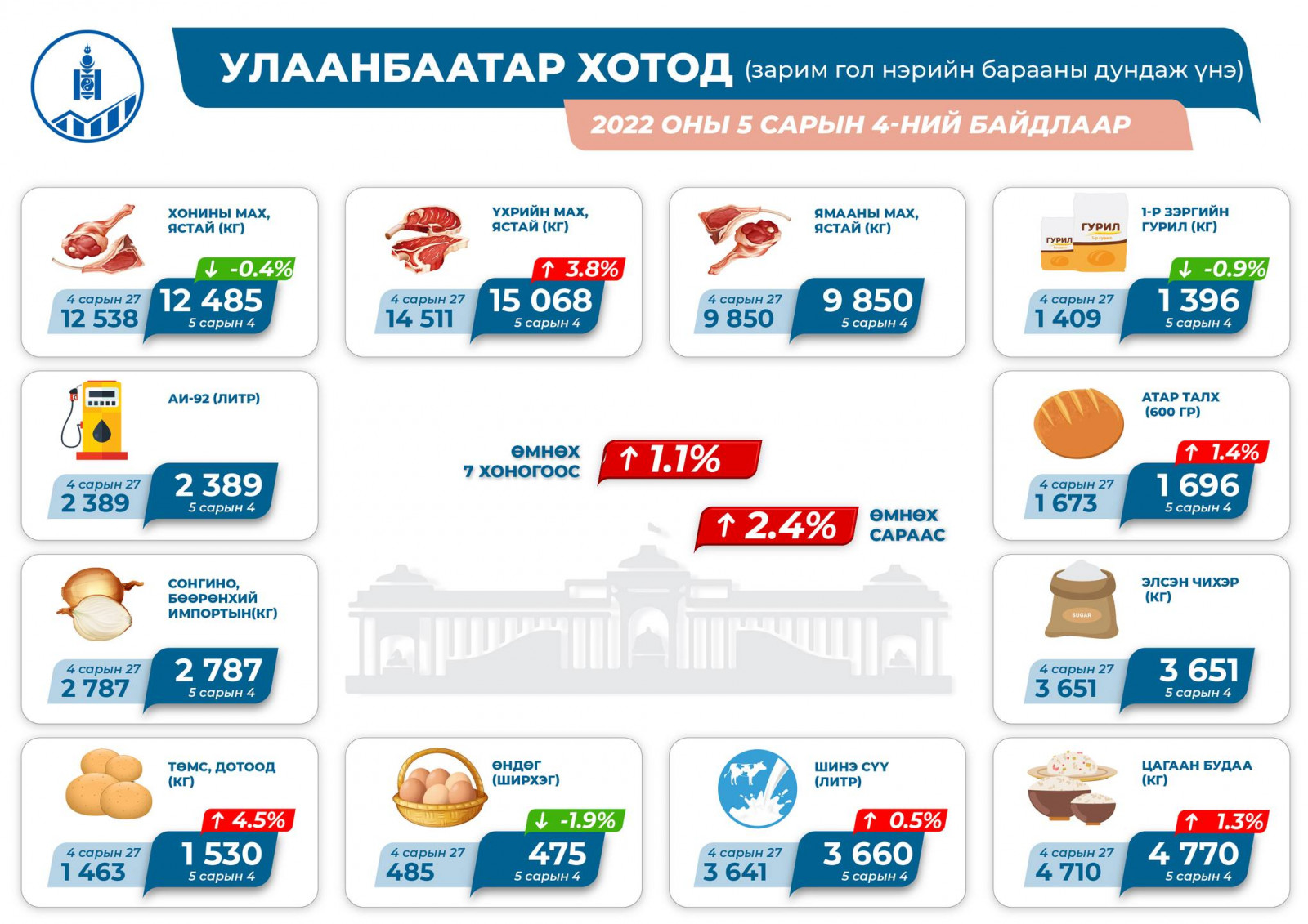 Хүнс, хөдөө аж ахуйн сайд З.Мэндсайхан "Гол нэрийн бараа бүтээгдэхүүний үнийн өсөлтийг бууруулах, нөөцийг бүрдүүлэх хуулийг Засгийн газраас өргөн барьсан. Үүнтэй холбоотойгоор гурил үйлдвэрлэгч болон дотоодын мах бэлтгэлийн ААН-үүдэд 234 тэрбум төгрөгийн эх үүсвэрийг гурван хувийн хүүтэй олгох, үүний зөрүү болох 10.6 хувийн хүүг Засгийн газар төсвөөсөө дэмжлэг болгон гаргахаар шийдвэрлэлээ. Нийт 25 орчим тэрбум төгрөгийн хүү гаргана. Энэ бол иргэдийнхээ мах гурилын үнийн дарамтаас гаргах хүүгийн татаасын дэмжлэг гэж ойлгож болно. Мөн төв суурин газрын хүн амын хэрэгцээнд зориулж Засгийн газраас 12.7 мянган тонн мах бэлдсэн. Энэ махны 30 хувь нь үхрийн мах бол 70 хувь хонь, ямааны мах байгаа. Өнөөдрийн байдлаар үхрийн мах 3600 тонн, хонины мах 6800 тонн, ямааны мах 1.1 мянган тонн нөөцтэй байна. Зах зээлд үхрийн мах 8900 төгрөг, хонины мах 8300 төгрөг, ямааны мах 7100 төгрөгөөр борлуулагдаж байна. Тэгвэл өнөөдрийн Засгийн газрын хуралдаанаар хонины мах дээр 250 төгрөгийн хөнгөлөлтийг нөөц хөрөнгөөсөө гаргаж, мах бэлдсэн компаниудад өгөхөөр шийдвэрлэсэн. Харин нөөцийн мах бэлдсэн 23 ААН нийгмийн хариуцлагын хүрээнд маханд 100 төгрөгийн хөнгөлөлт үзүүлнэ. Нийтдээ 350 төгрөгийн хөнгөлөлт үзүүлж байна гэсэн. Ингэхээр нөөцийн хонины мах 8300 төгрөгөөс 7950 төгрөг болж хямдарна. Мөн амралтын өдрүүдэд нөөцийн мах бэлтгэсэн компаниуд борлуулж буй хонины гулууз махны үнэ 7750 төгрөг болж хямдарна. Энэ бол өнөөдрийн байдлаар төв суурин газарт байгаа хамгийн хямд, сайн чанарын мах гэдгийг мэдээлэх байна. Нөөцийн мах худалдаалж буй цэгүүдийг 20 хувиар нэмэгдүүлж, маргаашаас үнийн зохицуулалт хийж арилжаална” хэмээв.