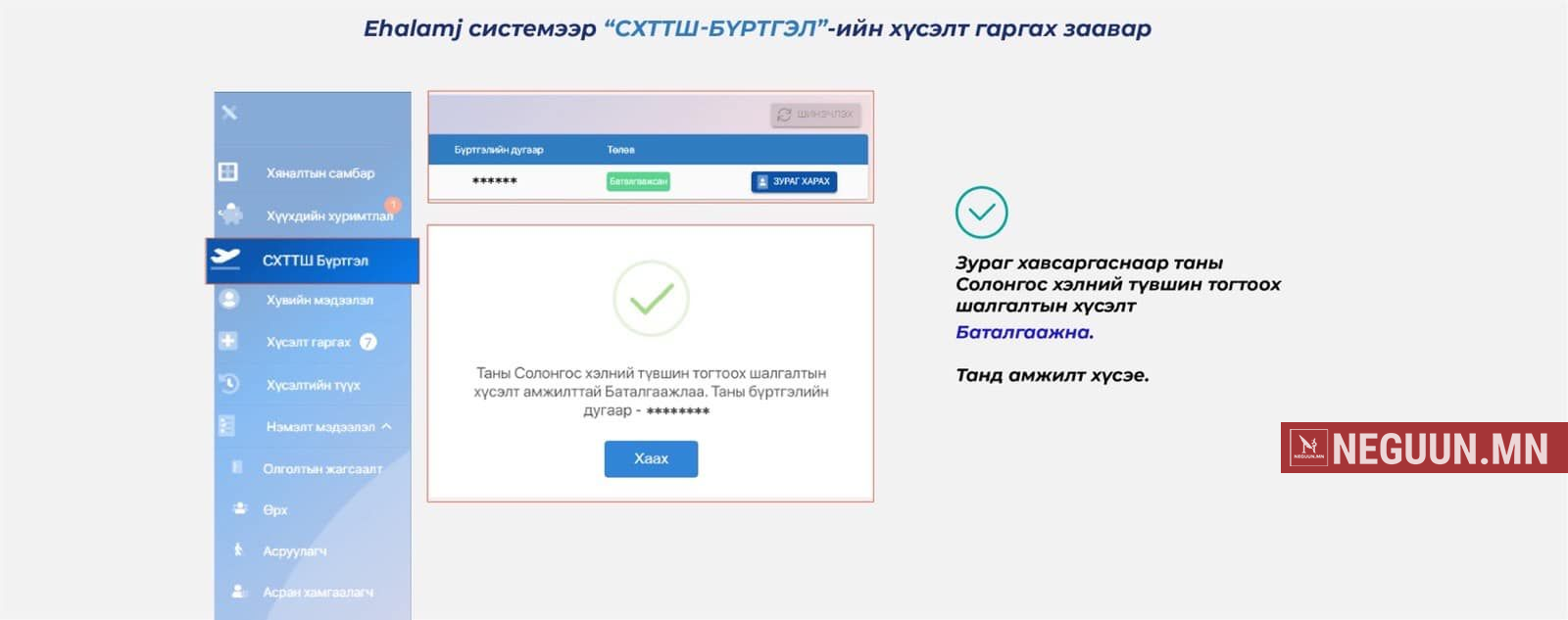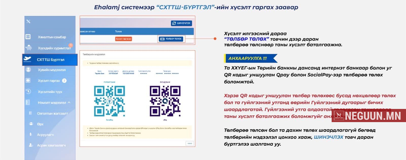 Бүртгэл хийгдэж, цахим системд заасан хугацаанд төлбөр төлөгдсөний дараа бичиг баримтыг зургаар оруулна.