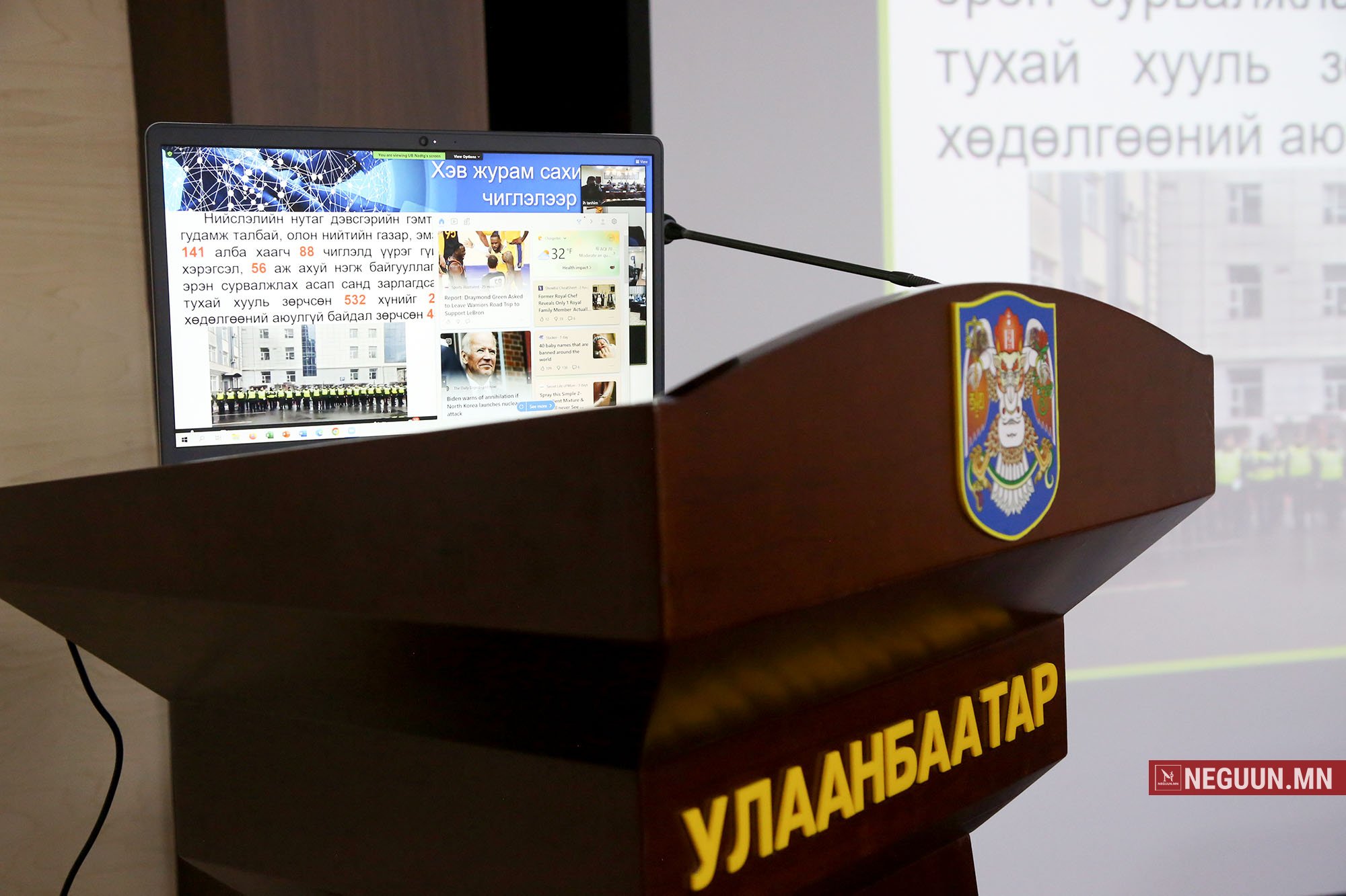 Нийслэлийн хэмжээнд гарсан гэмт хэрэг, зөрчил болон цаг үеийн нөхцөл байдлын талаар Нийслэлийн Цагдаагийн удирдах газрын дэд бөгөөд Захиргаа, удирдлагын газрын дарга, хурандаа Ц.Сугаржав танилцууллаа.