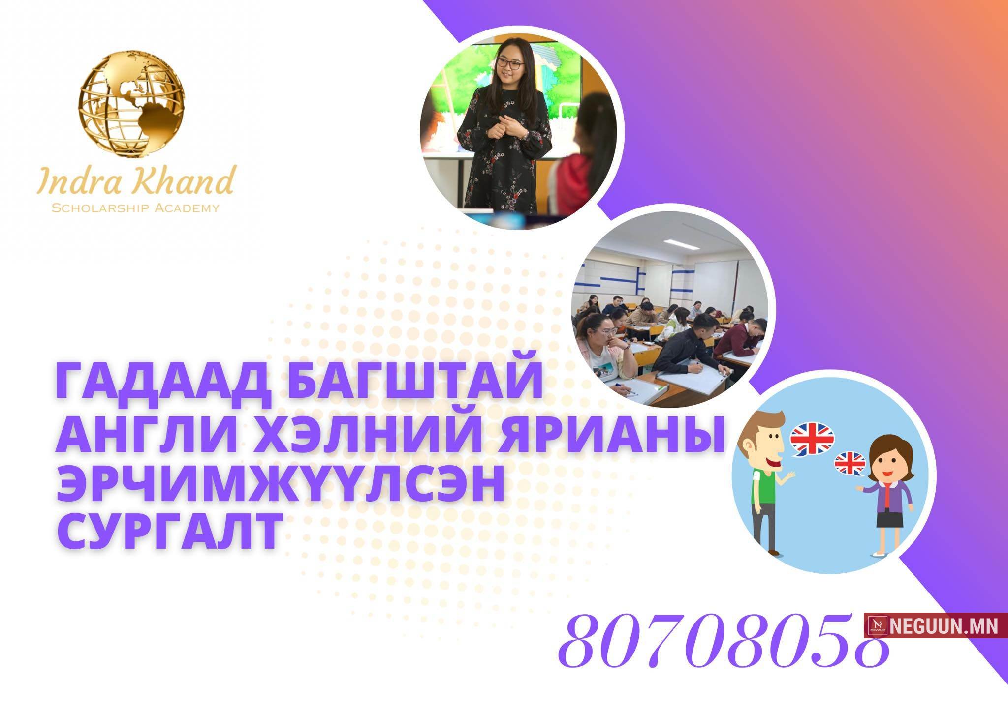 Гадаад багштай нартай Англи хэлний ярианы Эрчмийн эрчимжүүлсэн сургалтыг санал болгож байна.Олон жилийн туршлгатай гадаад багш нар өвөрмөц арга барилаар сургалтаа удирдан явуулдаг учраас та хамгийн богино хугацаанд хүссэн үр дүнд хүрэх боломжтой…