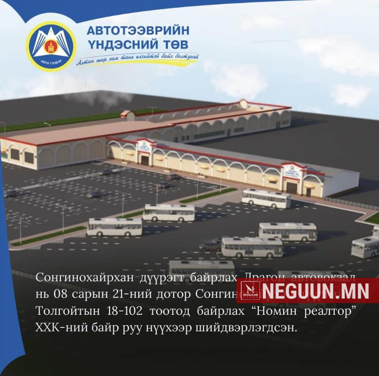 Сонгинохайрхан дүүрэгт байрлах "Драгон" автовокзал нь энэ сарын 21-ний дотор Сонгинохайрхан дүүргийн Толгойтын 18-102 тоотод байрлах “Номин реалтор” ХХК-ийн байр руу нүүхээр шийдвэрлэгдсэн байна.