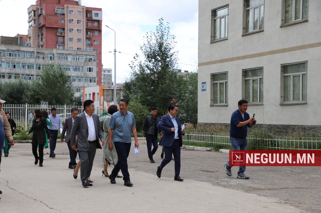 Тэгвэл өнөөдөр Уул уурхай, хүнд үйлдвэрийн сайд Ж.Ганбаатар, БШУ-ны сайд Л.Энх-Амгалан, Боловсролын Ерөнхий газрын дарга Т.Ням-Очир, БГД-ийн Засаг даргын үүргийг түр орлон гүйцэтгэгч Д.Жаргалсүрэн болон салбарын яам, Нийслэлийн Засаг даргын Тамгын газар, Сангийн яам, Үндэсний аудитын газар, Боловсролын Ерөнхий газар, Барилгын хөгжлийн төв, Нийслэлийн боловсролын газар зэрэг байгууллагын холбогдох хүмүүс багтсан Ажлын хэсгийнхэн Баянгол дүүрэгт ажиллалаа.