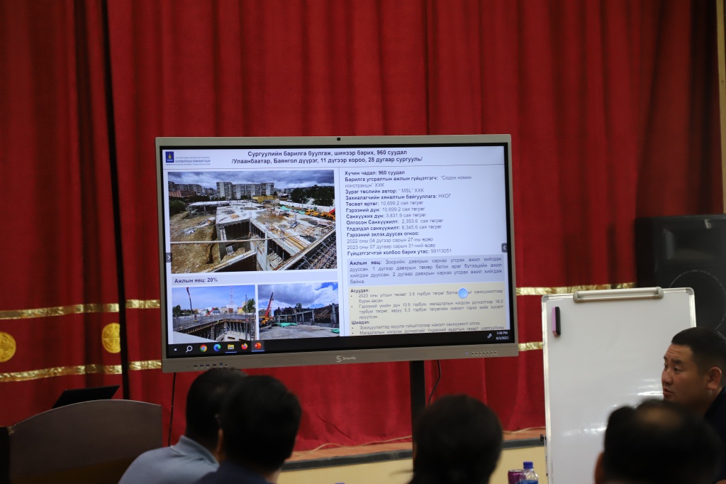 Мөн дүүргийн 11-р хороонд байрлах 960 хүүхдийн хүчин чадалтай 28 дугаар сургуулийн барилгын явц болон тулгамдаж байгаа асуудлын талаар сургуулийн удирдлагууд мэдээлэл өгсөн. Тус сургуулийн барилгын гүйцэтгэгч “Содон номин констракшн” ХХК 2022 оны 4 дүгээр сард барилгын ажлыг эхлүүлсэн бөгөөд энэ оны долдугаар сарын 31-ний өдөр хүлээлгэж өгөх байсан. Гэвч өнөөдрийн байдлаар зоорийн давхрын төмөр бетон, араг бүтээцийн ажил дуусаж хоёрдугаар давхрын карказ угсралтын ажил хийгдэж байгааг Гүйцэтгэгчдийн зүгээс нэмэлт санхүүжилт олгох, магадлалын нэгдсэн дүгнэлтийг Үндэсний аудитын газарт шалгуулах шаардлагатай байгаа. Барилга ирэх онд барилга ашиглалтад орно гэсэн мэдээллийг өглөө. Мөн 28-р сургуулийн удирдлагуудын зүгээс 2023-2024 оны хичээлийн жилд МҮИС-ийн байрыг түрээсэлж зохицуулалт хийхээр төлөвлөсөн гэдгийг хэлсэн юм.
