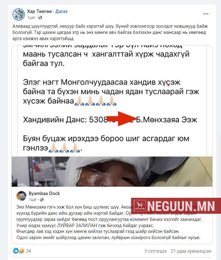 “Хас банкны теллер харилцагчийнхаа данснаас 120 сая төгрөг, банкнаасаа 50 сая төгрөг ХУЛГАЙЛЖЭЭ”нийтлэлийг бид өмнө нь хүргэсэн. Уг нийтлэлтэй холбоотойгоор мэдээллийг тэнцвэртэй хүргэх зорилгоор Хас банкнаас тодруулга авах гэсэн боловч мэдээлэл өгөөгүй юм. Харин худлаа мэдээлэл түгээсэн гэх асуудлаар биднийг сүрдүүлэхийг завдав. Иймд бид баримт нотолгоотой мэдээллийг уншигчдадаа хүргэсэн гэдгээ батлаж СҮХБААТАР ДҮҮРГИЙН ЭРҮҮГИЙН ХЭРГИЙН АНХАН ШАТНЫ ШҮҮХИЙН ШИЙТГЭХ ТОГТООЛЫг бүрэн эхээр нь хүргэж байна. МОНГОЛ УЛСЫН НЭРИЙН ӨМНӨӨС Баянзүрх,*******, Чингэлтэй дүүргийн Эрүүгийн хэргийн анхан шатны шүүхийн шүүх хуралдааны “Ё” танхимд******* дүүргийн Эрүүгийн хэргийн анхан шатны шүүх хуралдааныг шүүгч Д.Дарьсүрэн даргалж, Шүүх хуралдааны нарийн бичгийн дарга, Улсын яллагч Д.Д Хохирогчийн итгэмжлэгдсэн төлөөлөгч Х.Т Шүүгдэгч Б.Б нар оролцсон эрүүгийн 2209000000601 дугаартай хэргийг энэ өдөр нээлттэй хянан хэлэлцэв. Шүүгдэгч нарын биеийн байцаалт: Монгол Улсын иргэн,*******,*******,*******,*******,,, ам бүл 2,,,,, З овогт Б-ы Б Шүүгдэгч нарын холбогдсон гэмт хэргийн талаар: Шүүгдэгч Б.Б нь******* дүүргийн 4 дүгээр хорооны нутаг дэвсгэрт үйл ажиллагаа явуулдаг “Хас” банкны “Түшиг” салбарын харилцагчийн үйлчилгээний мэргэжилтний ажил эрхэлж байх хугацаандаа албан тушаалын байдлаа ашиглаж 2022 оны 03 дугаар сарын 03-ны өдрөөс022 оны 03 дугаар сарын 10-ны өдрийн хооронд тус салбарын тооцооны касснаас бэлнээр нийт 55.376.970 төгрөг, мөн022 оны 03 дугаар сарын 14-ний өдөр харилцагч Л.Т-гийн “Хас” банкинд эзэмшдэг 5001476576 тоот данснаас хоёр удаагийн гүйлгээгээр 120.000.700 төгрөгийг өөрийн төрсөн ах Б-ы Б-ын “Хаан” банкинд эзэмшдэг 5890613482 тоот данс руу шилжүүлэн авч “бусдын итгэмжлэгдэн хариуцуулсан эд хөрөнгө”-ийг хувьдаа завшиж, байгууллагад их хэмжээний хохирол буюу нийт 175.377.670 төгрөгийн хохирол учруулсан буюу Эрүүгийн хуулийн тусгай ангийн 17.4 дүгээр зүйлийн дахь хэсгийн.1,.2 дахь заалтад заасан гэмт хэрэгт холбогджээ. ТОДОРХОЙЛОХ нь: Шүүхийн хэлэлцүүлэгт дараах нотлох баримтуудыг шинжлэн судлав. Үүнд: Шүүгдэгч Б.Б шүүхийн хэлэлцүүлэгт мэдүүлэхдээ: “Би өөрийн бүх үйлдлээ хүлээн зөвшөөрч байна. Алдсан мөнгөө буцааж авах гэж нэмж мөнгө оруулаад алдсан. Хэргийн талаар нэмж мэдүүлэх зүйл байхгүй…Дээд лигийн 1 тэмцээндөөс 1.000.000 төгрөгийн ханшаар тоглодог. Мөн дээд лигт 10.000.000 сая төгрөгөөр гэрээ хийх гэж байгаа байгаа,, туслахаа илэрхийлсэн…” гэв. Хохирогчийн хууль ёсны төлөөлөгч Х.Т шүүхийн хэлэлцүүлэгт мэдүүлэхдээ: “…2022 оны 03 дугаар сарын 14-ны өдөр дотоод аудитын газраас гэнэтийн хяналт шалгалтыг хийсэн бөгөөд дээрх шалгалтаар түүний гэм буруутай үйлдлийг илрүүлсэн. Хяналт шалгалтын хүрээнд илэрсэн зөрчлийн талаар Б.Б-с тодруулга авахад тэрээр өөрийн гэм бурууг хүлээн зөвшөөрсөн. Түүний гэм бурууг харилцах дансны хуулга,, камерын бичлэг зэргээр тогтоосон. Банкнаас хууль тогтоомжийн дагуу харилцагч Т-гийн харилцах данс руу мөнгийг шилжүүлсэн. Б.Б мөрдөн шалгах ажиллагааны үед манай байгууллагын ажилтантай холбогдож хохирол төлбөрөөс 5.474.000 төгрөгийг төлсөн. Бидний зүгээс түүнээс 169.903.367 төгрөгийг нэхэмжилж байна…” гэв. Эрүүгийн 2209000000601 дугаартай хэргээс: Хохирогч Х.Тгийн мэдүүлэг /хх-ийн 12-13 дугаар хуудас/ Гэрч Л.Тгийн мэдүүлэг /хх-ийн 21-22 дугаар хуудас/, Гэрч Б.Бын мэдүүлэг /хх-ийн5-26 дугаар хуудас/, Гэрч Б.Хын мэдүүлэг /хх-ийн9-0 дугаар хуудас/, Гэрч М.М-гийн мэдүүлэг /хх-и