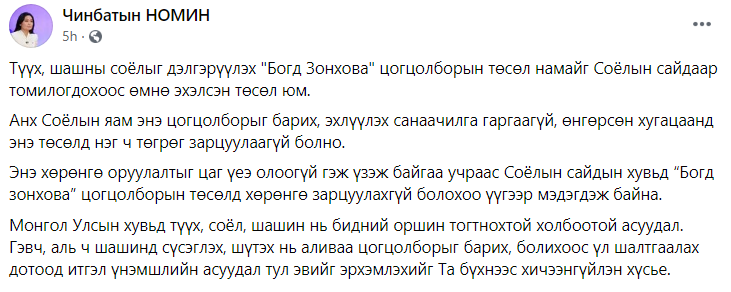 2022 оны улсын төсөвт 32 тэрбум  490 сая 800 мянган төгрөгийг "Богд зонхов" хөшөөг босгоход тусгасан. Тиймээс ч цахим орчинд иргэд нэгэн дуугаар цаг үеэ олоогүй тус ажлыг эсэргүүцэж эхлээд байна. Тиймээс ч гол шүүмжлэлийн бай нь соёлын сайд Ч.Номин болсон. Тэрээр шүүмжлэлээс холдохын тулд өнөөдөр тухайн төсөвт суулгасан мөнгөнөөс нэг ч төгрөг тухайн барилгад зарцуулахгүй гэдгээ мэдэгдээд байгаа юм.