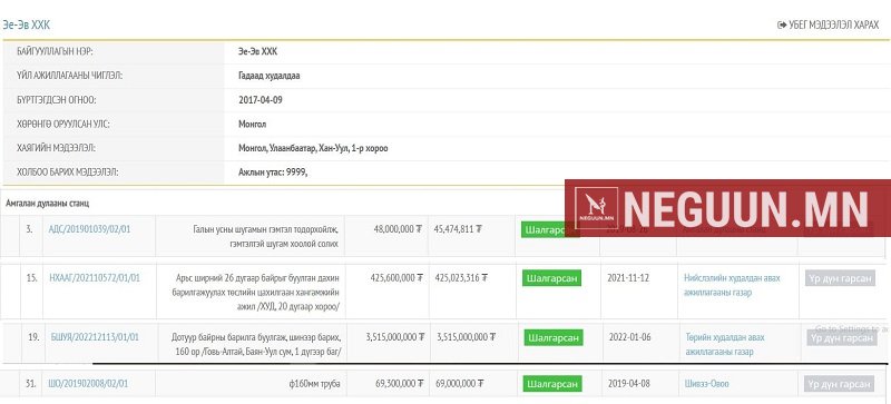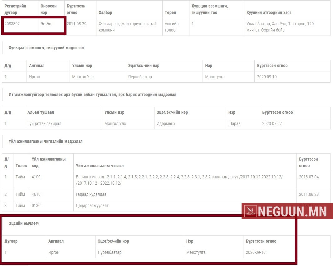 "АЛТАНДОРНОД МОНГОЛ" КОМПАНИЙ ЗАХИРАЛ Т.ГАНБОЛДЫН ЭХНЭР Х.ЯНЖИНГААЖИД ИНГЭЖ БИЧЖЭЭ