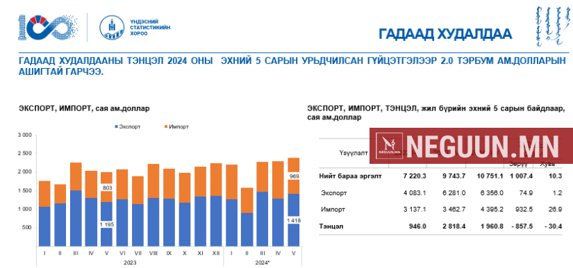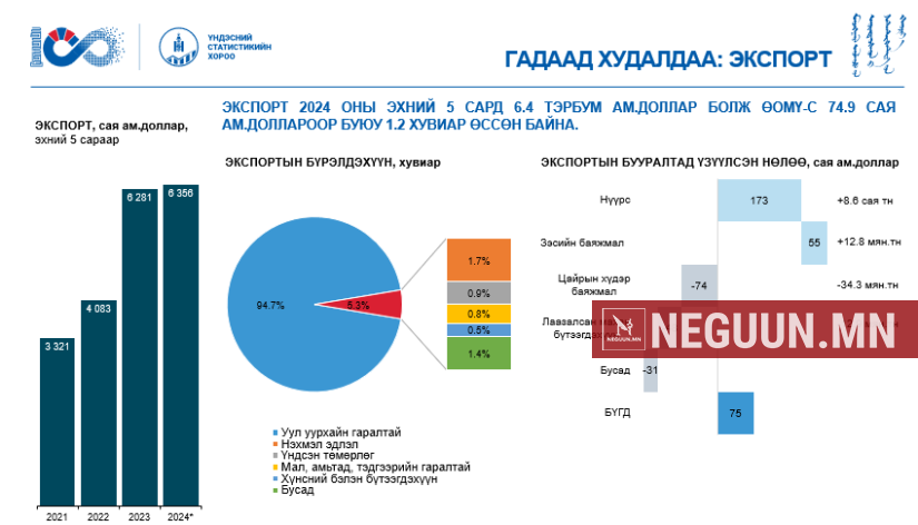 Монгол Улсын хөрөнгийн зах зээлийн үнэлгээ 2024 оны 1 дүгээр улирлын байдлаар 11.8 их наяд төгрөгт хүрсэн байна. Уг үзүүлэлт ДНБ-ний 17.1 хувьтай тэнцжээ. Энэ оны 1 дүгээр улиралд 204.93 тэрбум төгрөгийн үнэт цаасны арилжаа хийсэн байна. Арилжааны 188.94 тэрбум төгрөгийг үнэт цаасны арилжааны байгууллагаар, 15.99 тэрбум төгрөгийг хамтын нээлттэй хөрөнгө оруулалтын сангаар хийжээ. Энэ хугацаанд хувьцааны арилжаа түлхүү явагдав гэж Санхүүгийн зохицуулах хорооноос мэдээллээ. Үнэт цаасны арилжааны хувьд: 62.70 хувийг хувьцаа, 20.77 хувийг компанийн өрийн хэрэгсэл, 8.16 хувийг хөрөнгөөр баталгаажсан үнэт цаас, 8.37 хувийг хөрөнгө оруулалтын сангийн нэгж эрх, Мөн хугацаанд 128.48 тэрбум төгрөгийн хувьцааны арилжаа хийгдсэн нь 2023 оны мөн үеийнхтэй харьцуулахад 145.5 хувиар буюу 2.45 дахин нэмсэн үзүүлэлттэй гэнэ. Хувьцааны анхдагч зах зээлд нийт 8.90 тэрбум төгрөгийн, хоёрдогч зах зээлд нийт 119.58 тэрбум төгрөгийн арилжаа явсан байна. Зах зээл дээрх хувьцааны арилжааны тэргүүлэгч эхний 10 компанийн мэдээллийг үнийн дүнгээр харуулбал: “Говь” ХК 67.89 тэрбум төгрөг, “ХААН банк” ХК 8.75 тэрбум төгрөг, “Богд банк” ХК 6.12 тэрбум төгрөг, “Голомт банк” ХК 4.70 тэрбум төгрөг, “Худалдаа хөгжлийн банк” ХК 3.23 тэрбум төгрөг, “Хас банк” ХК 3.11 тэрбум төгрөг, “АПУ” ХК 2.84 тэрбум төгрөг, “Газар шим үйлдвэр” ХК 2.70 тэрбум төгрөг, “Ард санхүүгийн нэгдэл” ХК 2.53 24 тэрбум төгрөг, “Инвескор ББСБ” ХК 2.50 25 тэрбум төгрөг, Ийм байдлаар эхний 30 компанийг нэрлэжээ. Эдгээр компанийн арилжааны үнийн дүн 118.76 тэрбум төгрөгт хүрчээ. Компанийн өрийн хэрэгслийн анхдагч зах зээлийн арилжаа явагдаагүй. Харин хоёрдогч зах зээлийн арилжаагаар нийт 42.56 тэрбум төгрөгийн арилжаа явагдсан юм байна. Хөрөнгө оруулалтын сангийн тухай хууль батлагдсанаас хойш 2024 оны 1 дүгээр улиралд 31 компани хөрөнгө оруулалтын менежментийн үйл ажиллагаа эрхлэх тусгай зөвшөөрөлтэй байна. Хөрөнгө оруулалтын сангийн нэгж эрхийн хоёрдогч зах зээлд 17.16 тэрбум төгрөгийн арилжаа хийсэн. Түүнээс хамтын хаалттай хөрөнгө оруулалтын сангаар 1.17 тэрбум төгрөгийн арилжаа, хамтын нээлттэй хөрөнгө оруулалтын сангаар 15.99 тэрбум төгрөгийн арилжаа хийсэн. Эдгээр нь арилжааны 6.8 болон 93.2 хувийг бүрдүүлж байна. Хоёрдогч зах зээлд дээр дурдсан 17.16 тэрбум төгрөгийн арилжаа хийсэн. Энэ нь 2023 оныхоос 24.1 хувиар нэмэгдсэн дүн юм. Хөрөнгөөр баталгаажсан үнэт цаасны анхдагч зах зээлийн арилжаагаар 15.0 тэрбум төгрөгийн, хоёрдогч зах зээлд нийт 1.73 тэрбум төгрөгийн, нийт 16.73 тэрбум төгрөгийн арилжаа хийсэн гэнэ. Энэ оны эхний улиралд Уул уурхайн бүтээгдэхүүний биржээр 68 удаагийн арилжаагаар 5.22 сая тонн нүүрсийг 2.39 их наяд төгрөгөөр худалджээ. Мөн 59 удаагийн биржийн арилжаагаар 358.8 мянган тонн төмрийн хүдэр, баяжмалыг 94.94 тэрбум төгрөгөөр, 127 удаагийн арилжаагаар 5.58 сая тонн уул уурхайн бүтээгдэхүүнийг 2.48 их наяд төгрөгөөр арилжаалсан байна. Тухайлбал: коксжих нүүрс 53.55 хувь (1/3), баяжуулсан коксжих нүүрс 14.71 хувь, баяжуулсан дунд зэрэг үнстэй хагас хатуу коксжих нүүрс 2.45 хувь, баяжуулсан сул коксжих нүүрс 0.25 хувь, дэгдэмхий бодис дундаас их, хийн нүүрс 2.45 хувь, дэгдэмхий бодис дунд, коксжих нүүрс 24.14 хувь, эрчим хүчний нүүрс 2.45 хувь, Төмрийн хүдэр, баяжмал энэ оны эхний улиралд 358.8 мянган тонныг арилжаалсны хувьд: 52.22 хувийг Fe-52%- ийн агууламжтай төмрийн хүдэр, 20.19 хувь Fe-58%-ийн агууламжтай төмрийн баяжмал, 27.59 хувийг Fe-65%-ийн агууламжтай төмрийн баяжмал худал