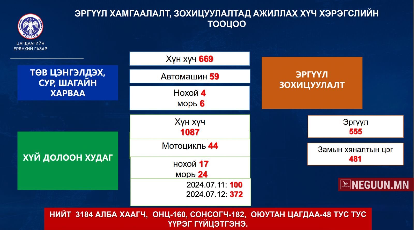 БАЯР НААДМЫН ҮЕЭР ХҮЙ ДОЛООН ХУДАГ, ТӨВ ЦЭНГЭЛДЭХ ОРЧИМД 3,184 ЦАГДААГИЙН АЛБА ХААГЧ АЖИЛЛАНА