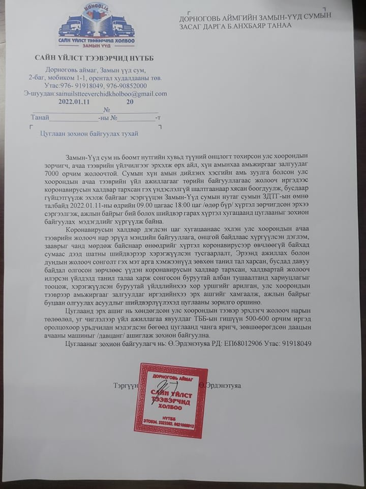Ковидын нөлөөгөөр жолооч нар эрүүл мэндийн байгууллага , онцгой байдлаас хүргүүлсэн дэглэм зааврыг чанд мөрдөж байсан ч төр засгийн шийдвэр тогтоол тусгаарлалт , эрээнд ажиллах дундын жолооч зэрэг арга хэмжээнүүд нь танил талдаа илтэд давуу байдал бий болгосон үйлдлүүд олон гарсан тул энэ мэт шударга бус үйлдлүүдийг таслан зогсоохыг уриалав.
