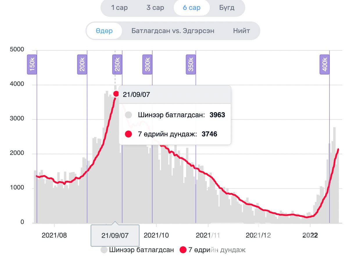 МОНГОЛ УЛСАД ДОТООДЫН ХАЛДВАРААС ОМИКРОН ХУВИЛБАРЫН ТАВАН ТОХИОЛДОЛ БҮРТГЭГДСЭН НЬ ЦАР ТАХЛЫН ДӨРӨВДҮГЭЭР ДАВЛАГАА ЭХЭЛЖ БАЙГААГ ХАРУУЛЛАА