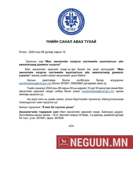 МАЛ ЭМНЭЛГИЙН ГЭРЧИЛГЭЭНИЙ НЭГДСЭН СИСТЕМИЙН ҮЙЛ АЖИЛЛАГААГ САЙЖРУУЛАХ АЖИЛД ҮНИЙН САНАЛАА ИРҮҮЛЭЭРЭЙ ‼️