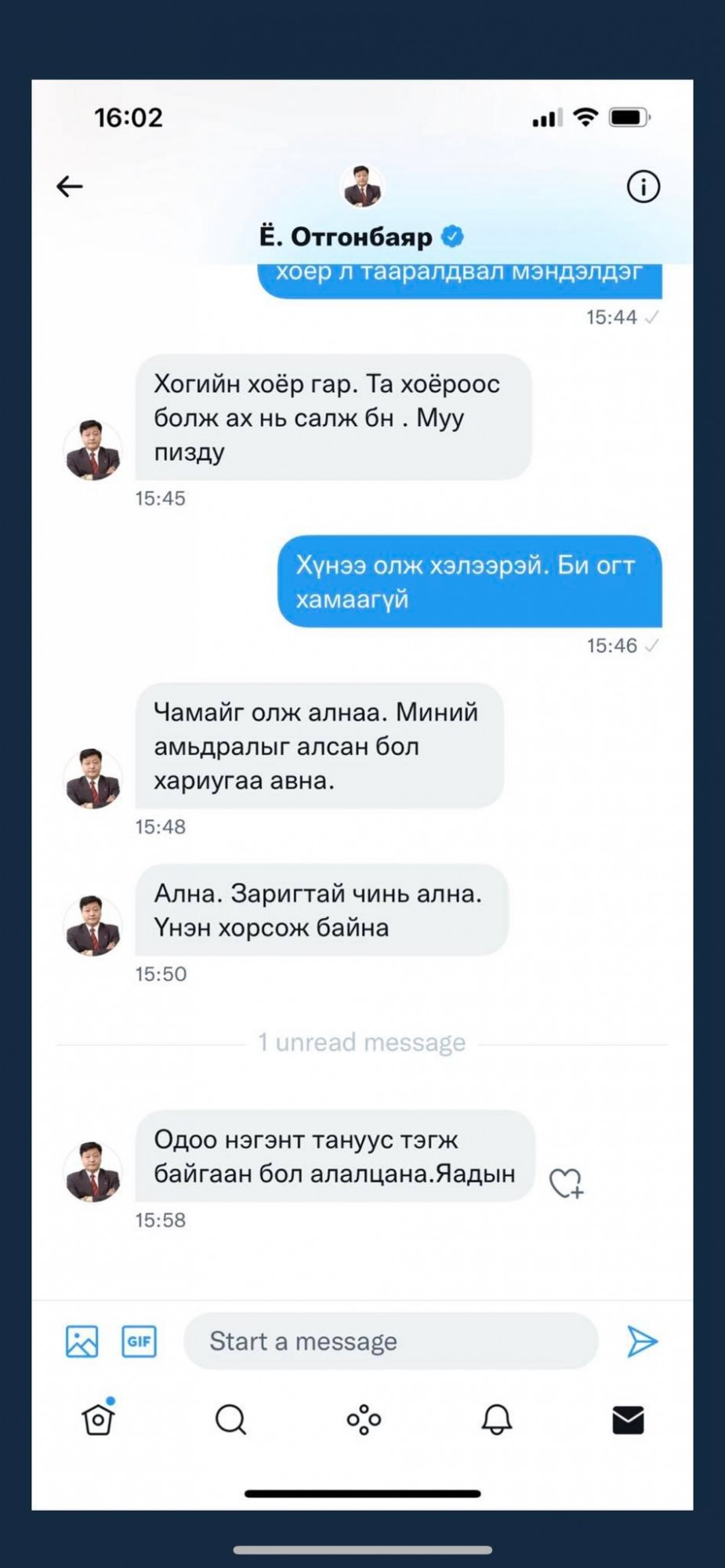 САЙД АСАН Ё.ОТГОНБАЯР АЛБАН ЁСНЫ ТВИТТЕР ХУУДСААРАА СЭТГҮҮЛЧИЙГ АЛНА ГЭЖ СҮРДҮҮЛЖЭЭ