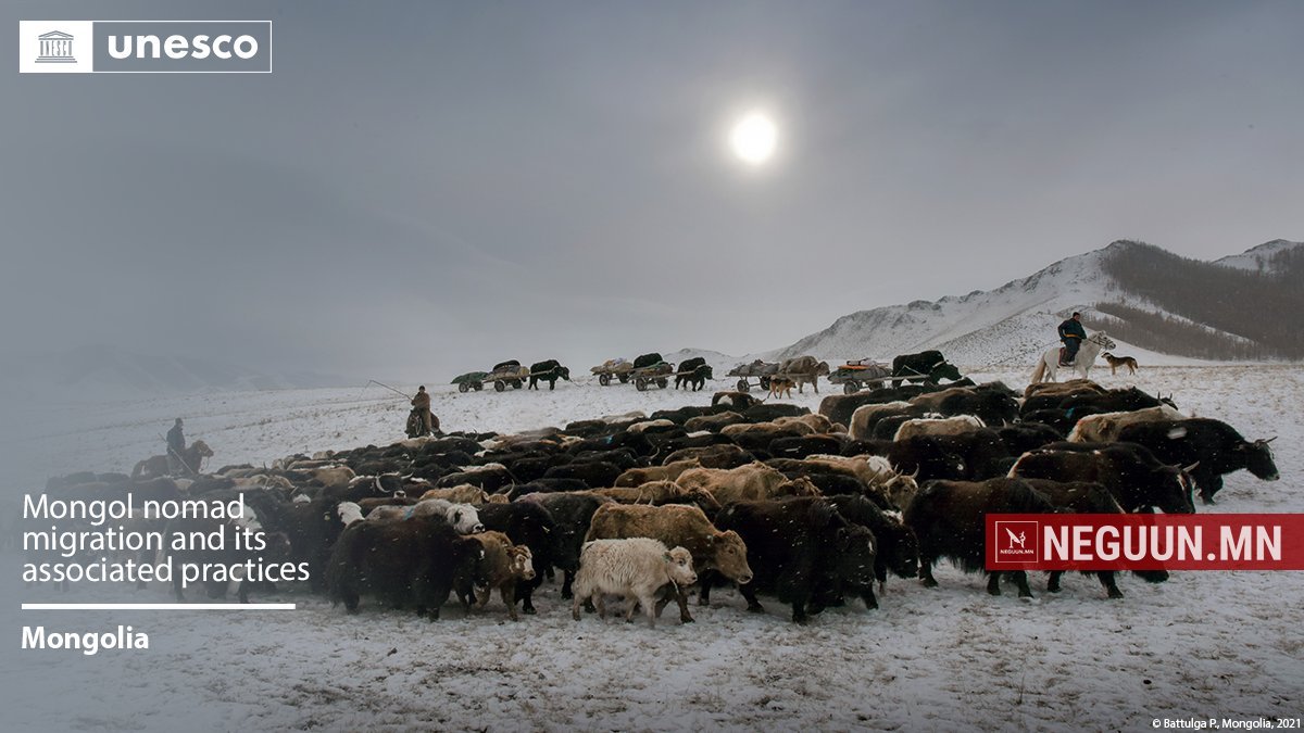 ЮНЕСКО-гийн Соёлын биет бус өвийг хамгаалах тухай конвенцын Засгийн газар хоорондын хорооны 19 дүгээр чуулган Бүгд Найрамдах Парагвай Улсын Асунсион хотноо 2024 оны 12 дугаар сарын 02-оос 07-ны өдрүүдэд хуралдаж байгаа билээ. Энэхүү чуулганы 5-ны өдрийн хуралдаанаар Монгол Улсаас ЮНЕСКО-ийн Хүн төрөлхтний соёлын биет бус өвийн Төлөөллийн жагсаалтад бүртгүүлэхээр нэр дэвшүүлсэн “Монгол нүүдлийн зан үйл” өвийг хэлэлцэж, хорооны гишүүдийн 100 хувийн саналаар бүртгэдлээ. Монгол нүүдлийн зан үйл өв нь Монгол Улсаас ЮНЕСКО-гийн соёлын биет бус өвийн жагсаалтад бүртгүүлсэн 16 дахь өв болж байна.