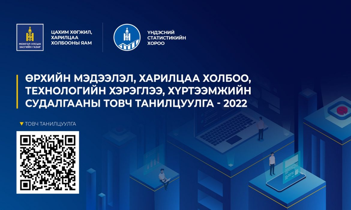 Үндэсний статистикийн хороо, Цахим хөгжил, харилцаа холбооны яам хамтран “Өрхийн болон хувь хүний мэдээлэл, харилцаа холбоо, технологийн хэрэглээний судалгаа”-г олон нийтэд танилцууллаа.